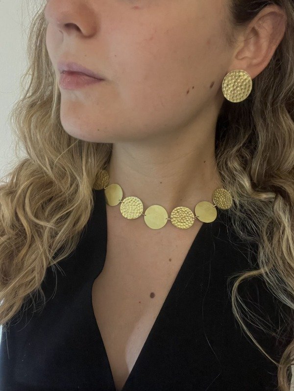Gargantilla hecha a mano en bronce con textura y cierre "T".