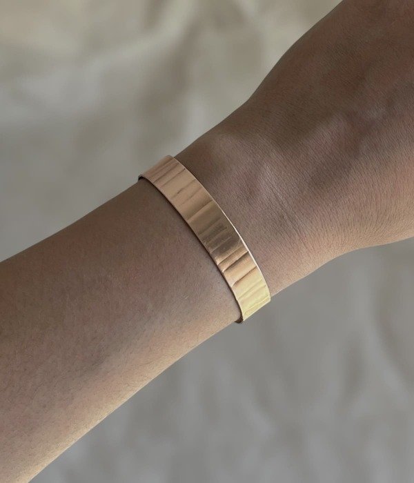 Pulsera de cobre de 1cm de ancho con textura rayada.